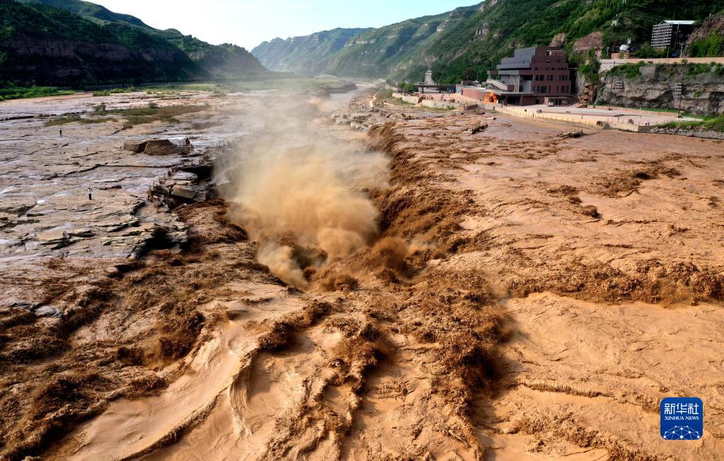 近日,受強降雨天氣影響,位于晉陜兩省交界的黃河壺口瀑布迎來今年入汛以來最大洪水,每秒流量超過4500立方米。為了確保游客安全,山西吉縣壺口瀑布景區于8月22日16時起采取臨時關閉措施。