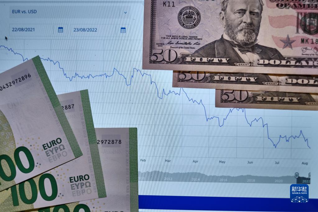 德國法蘭克福證券交易所發布的數據顯示,歐元對美元匯率22日再次跌破1比1,最低曾跌至1比0.9934,創下20年來新低。