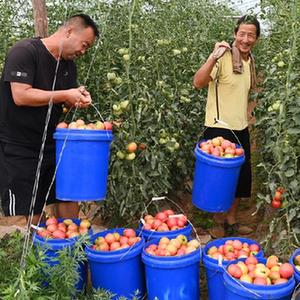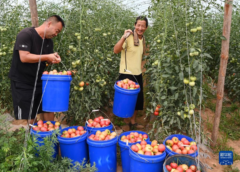8月23日,洛南縣麻坪鎮三興村的村民在大棚里采摘西紅杮。