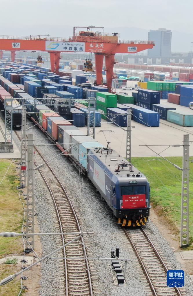 當日,裝載著41車石棉的中越國際貨運班列由西安國際港站駛出,預計將于8天后抵達越南首都河內。本次運輸的石棉前期自哈薩克斯坦搭乘中歐返程班列抵達西安國際港站,經過海關轉關后發往越南,中歐班列與中越班列實現了無縫銜接。