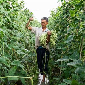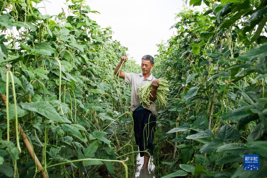 8月23日,廣西南寧市興寧區五塘鎮永寧村的農民在采收豆角。