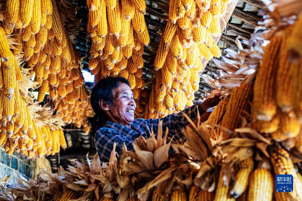 8月23日,湖南省東安縣大廟口鎮韭菜村村民在晾曬玉米。