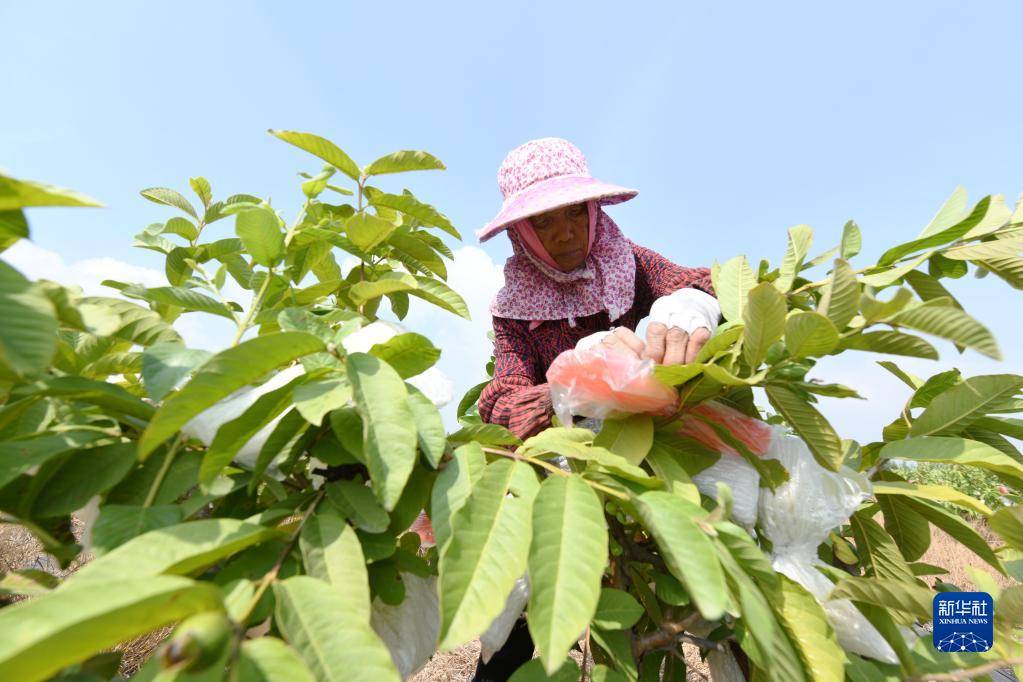 8月23日,在福建省福清市??阪傖荡宓囊惶庌r場,果農忙著疏果、套袋。