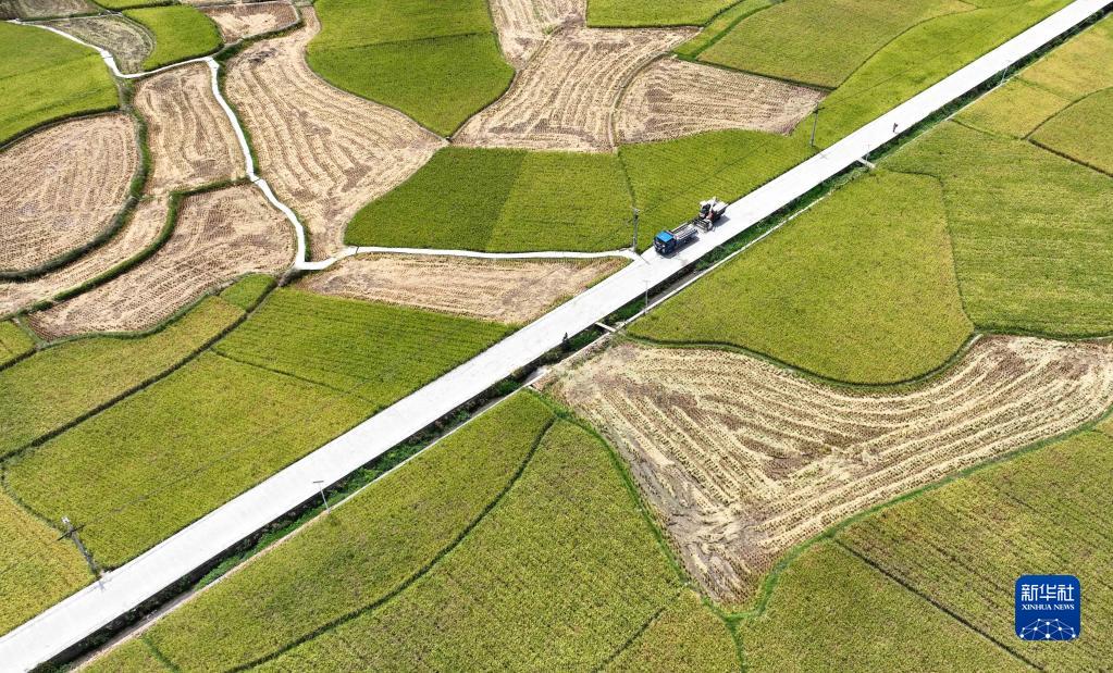 連日來,貴州省綏陽縣旺草鎮種植的水稻陸續進入成熟收割期,當地村民搶抓農時收割水稻,確保糧食顆粒歸倉。