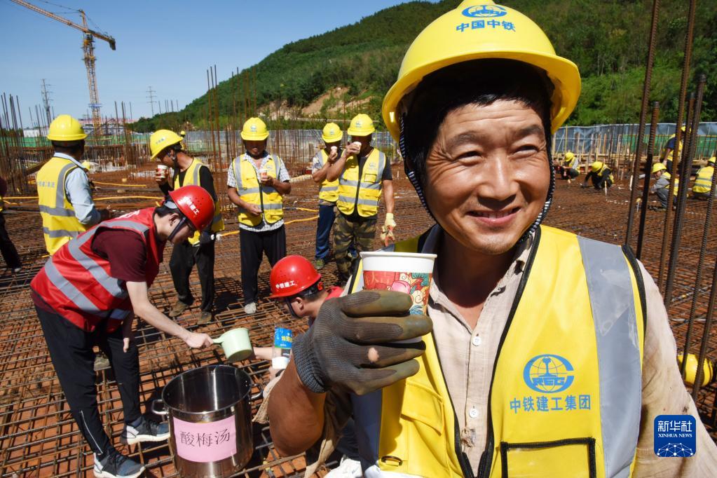 入夏以來,位于山東省青島市的中鐵建工青島各項目部在施工一線建起“清涼驛站”,為建設者送上飲料、防暑藥品等,關愛高溫下的勞動者。