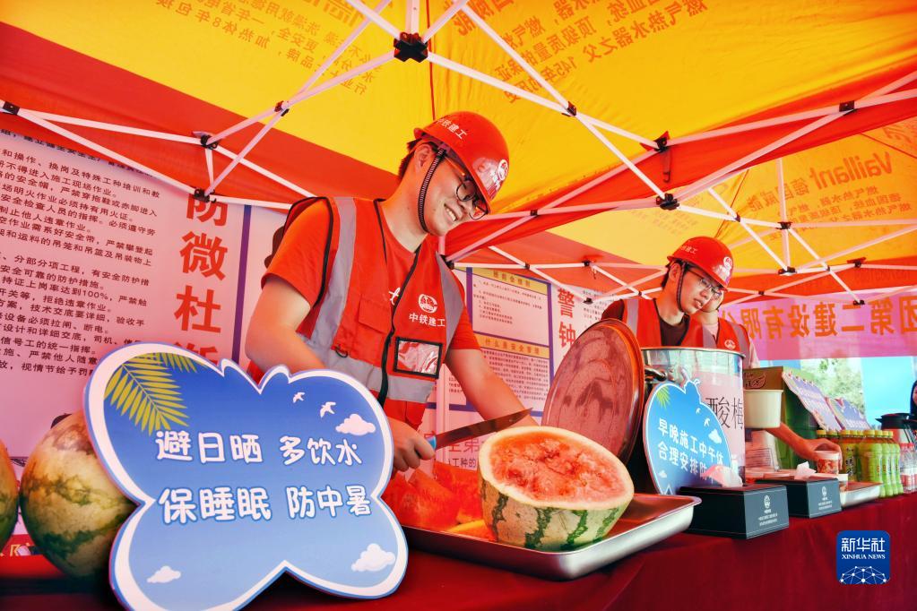 入夏以來,位于山東省青島市的中鐵建工青島各項目部在施工一線建起“清涼驛站”,為建設者送上飲料、防暑藥品等,關愛高溫下的勞動者。