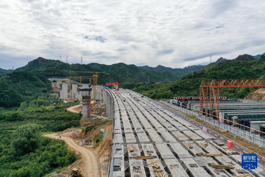 這是8月23日拍攝的首都地區環線高速公路承德至平谷段四頃地特大橋施工現場(無人機照片)。 新華社發(王立群 攝)