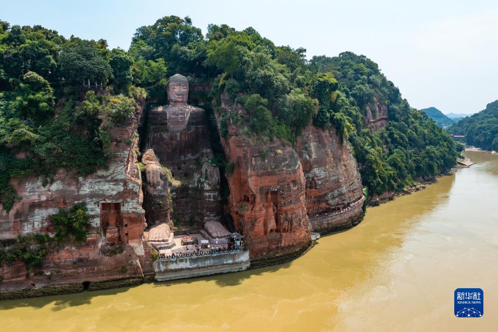 近期,持續高溫晴熱天氣使四川省多地出現不同程度的旱情,長江上游的主要支流岷江、青衣江和大渡河三條水系的上游來水均少于往年同期,導致樂山大佛前方的三江匯流處水位持續降低,部分河床與江灘裸露,樂山大佛罕見露出底座。