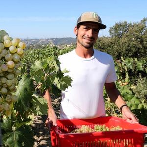 8月23日,工作人員在法國尼斯一家酒莊的葡萄園收割葡萄。