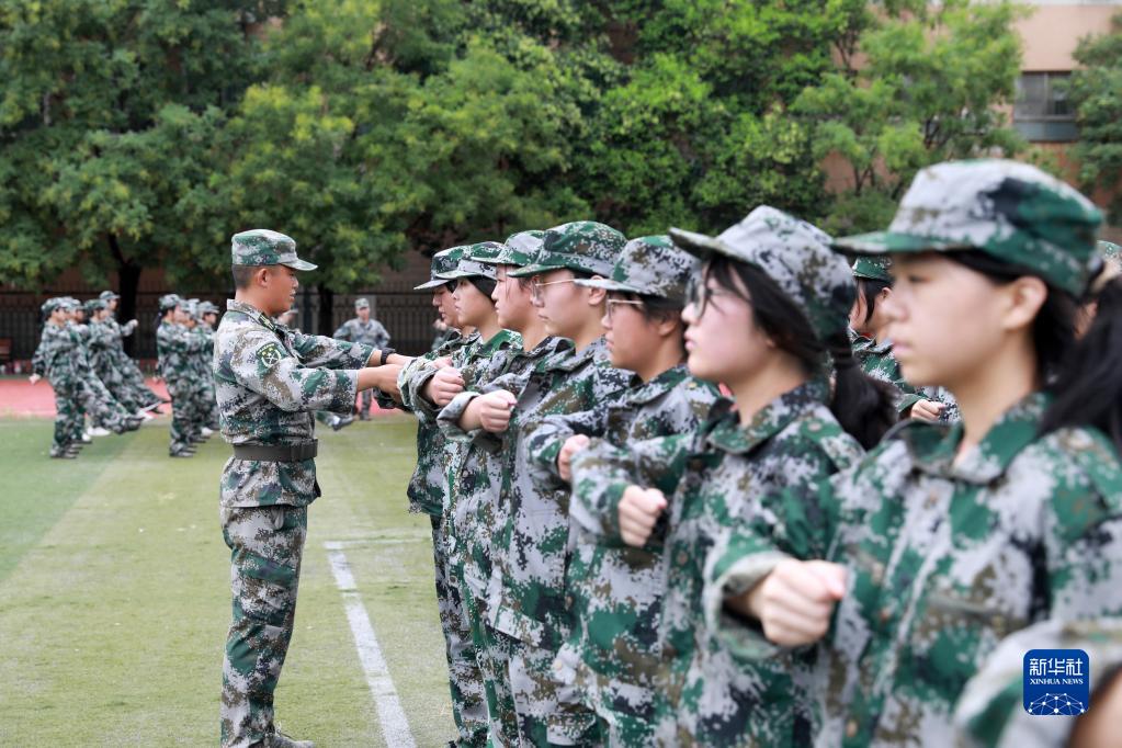 新學期來臨,安徽省淮北市的高中組織新生開展軍訓,鍛煉身體素質,磨礪意志品質。
