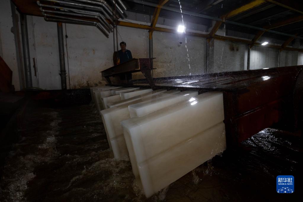 8月16日在上海玉湖制冰有限公司拍攝的制冰場景。