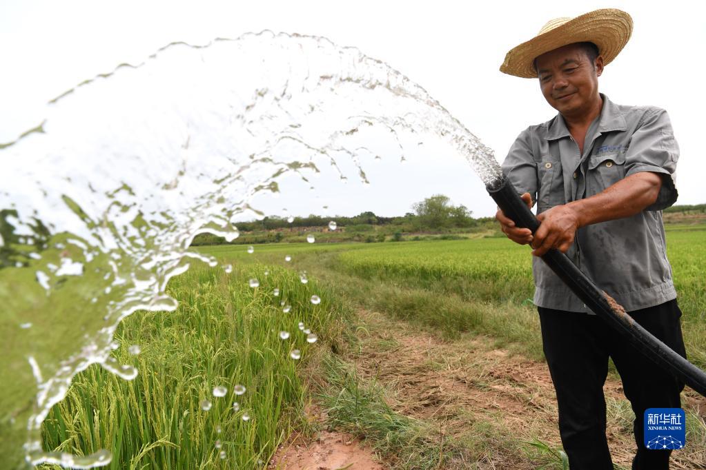 8月24日,肥西縣花崗鎮八里社區種糧大戶張守勤利用剛打的水井灌溉水稻。