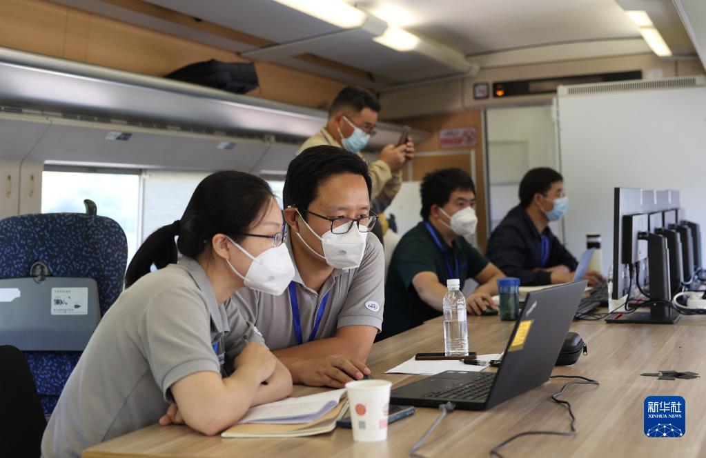 8月23日,工作人員在彌蒙高鐵綜合檢測車內工作。