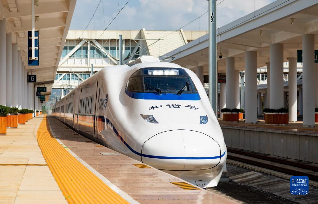 8月23日,綜合檢測車駛出彌蒙高鐵彌勒站。