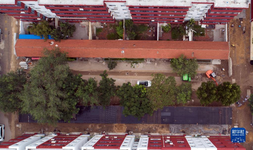 這是8月24日拍攝的滄州渤海新區黃驊市交通小區升級改造施工現場(無人機照片)。