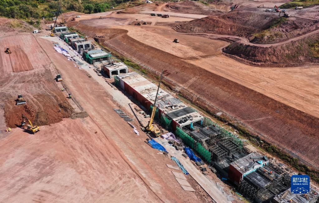 這是8月23日拍攝的新建重慶至黔江鐵路重慶東站動車所路基項目施工作業現場(無人機照片)。