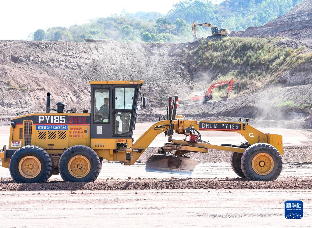 這是8月23日拍攝的新建重慶至黔江鐵路重慶東站動車所路基項目施工作業現場。
