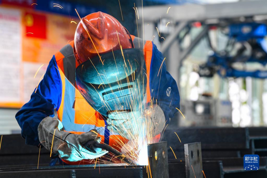 8月23日,工人在新建重慶至黔江鐵路站前3標智能化鋼構廠作業。