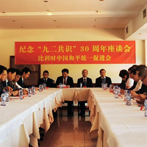 比利時僑團23日在貝爾瑟勒舉行座談,紀念“九二共識”達成30周年。比利時主要僑團負責人和各界僑胞代表約50人參加當天的座談。
