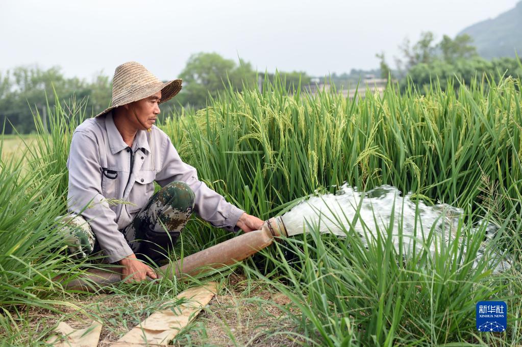 8月23日,在安徽省蕪湖市繁昌區新港鎮新東村,農民抽水灌溉稻田。