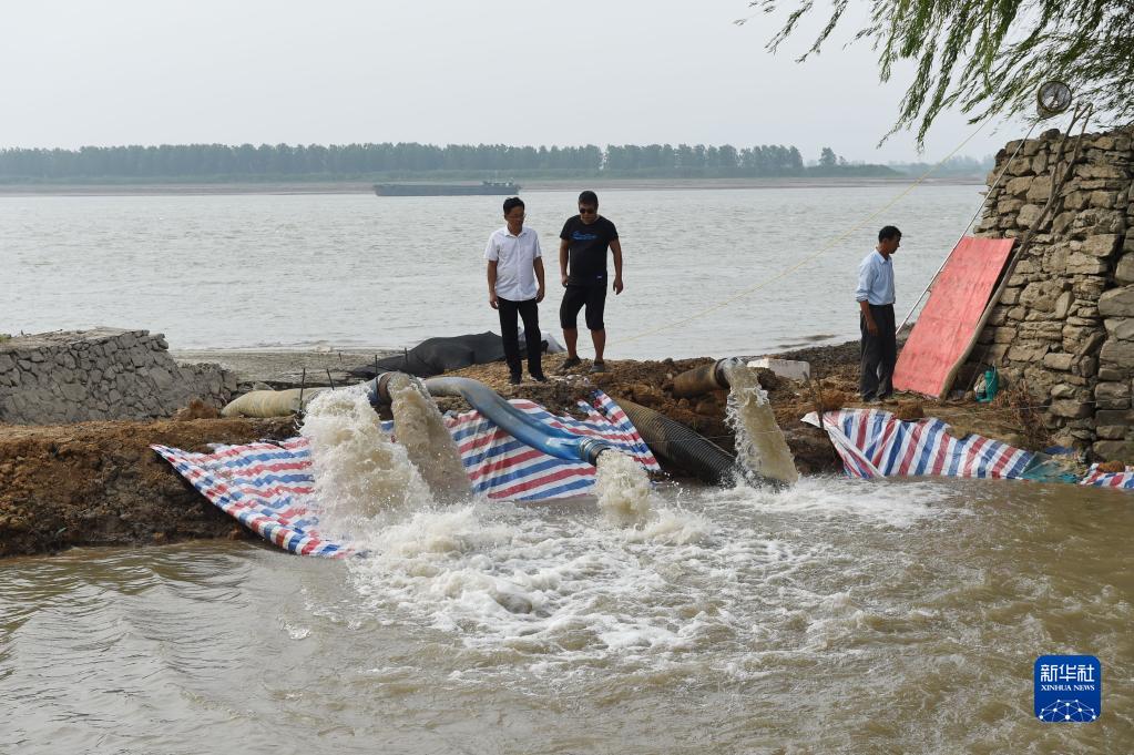 8月23日,在安徽省蕪湖市繁昌區新港鎮,工作人員用水泵從長江抽水,為農業生產提供灌溉水源。