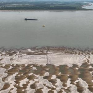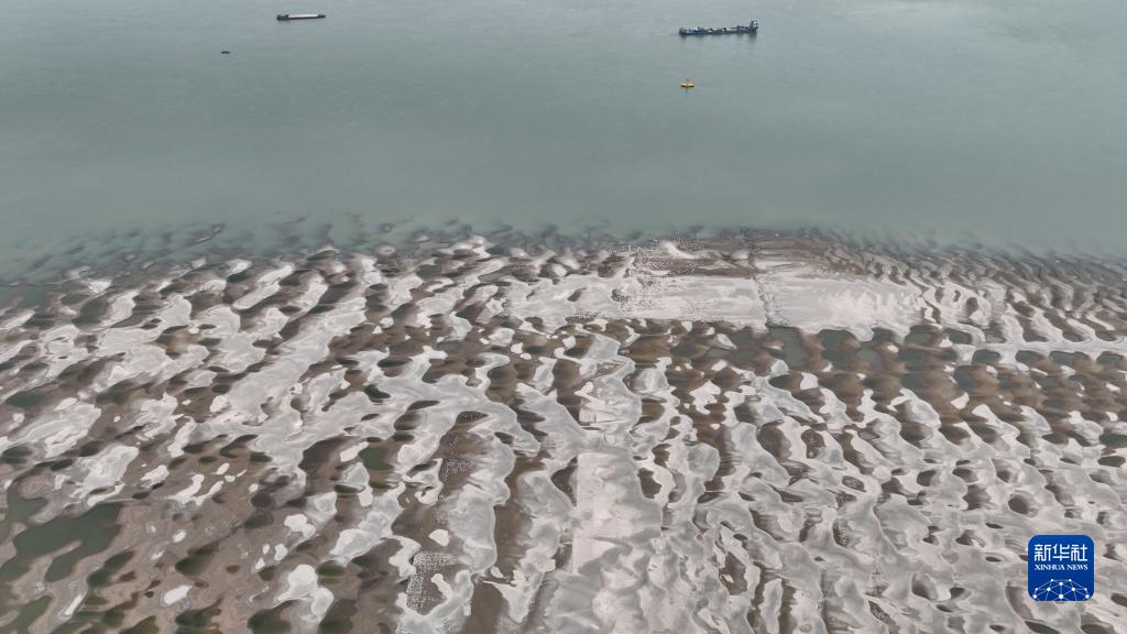 這是長江柴桑區段裸露的灘涂(8月24日攝,無人機照片)。