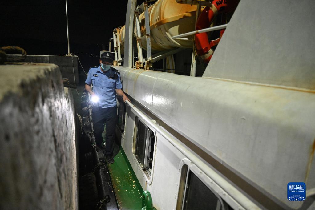 8月23日,在莆田市秀嶼區埭頭鎮黃瓜村,許偉偉在一艘渡輪上進行安全檢查。