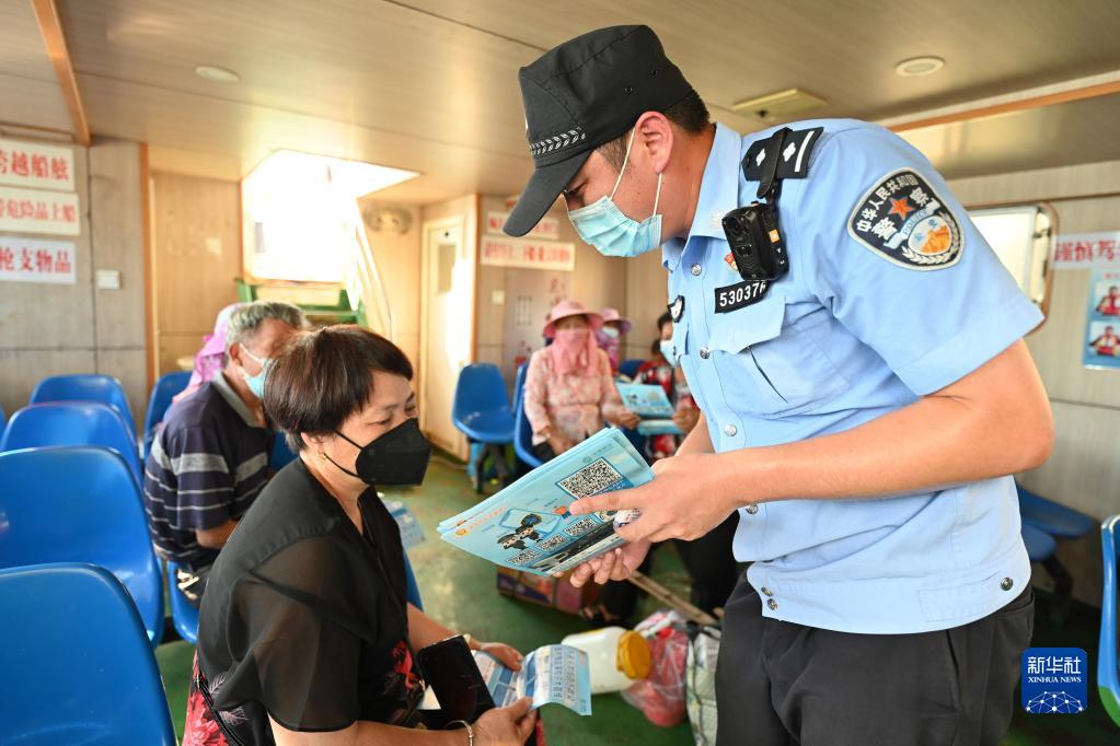 8月23日,在渡輪“黃瓜號”上,許偉偉向村民宣傳反詐知識。