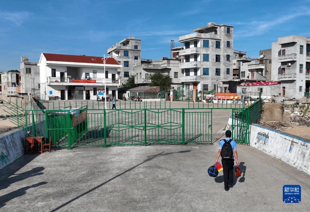 8月23日,在莆田市秀嶼區埭頭鎮黃瓜村,許偉偉從碼頭進村(無人機照片)。