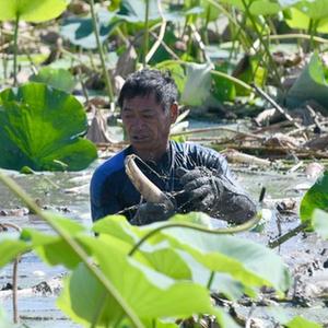 日前,山東省微山縣高樓鄉種植的蓮藕進入成熟收獲期。高樓鄉位于微山湖畔,近年來當地利用沿湖低洼田地多的條件,因地制宜發展蓮藕種植產業,目前全鄉蓮藕種植面積達到了4萬余畝。