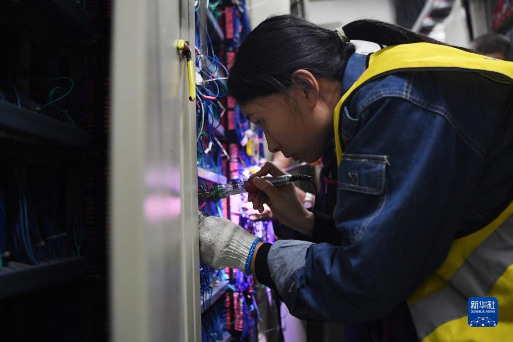 8月25日,中鐵八局電務公司工作人員徐航在蘭新鐵路玉石站作業。