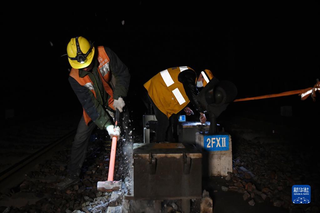 8月25日,中鐵八局電務公司工作人員在蘭新鐵路玉石站作業。