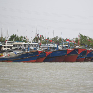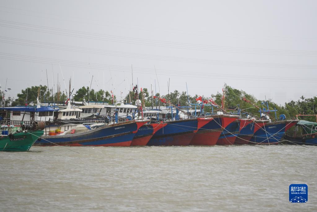 8月25日,廣東陽江市對岸漁港停泊著回港避風的漁船。