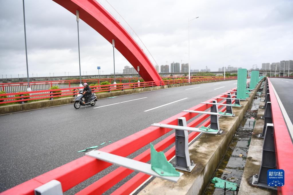 8月25日,在廣東陽江市漠陽江東河大橋,一些護欄被臺風損壞。