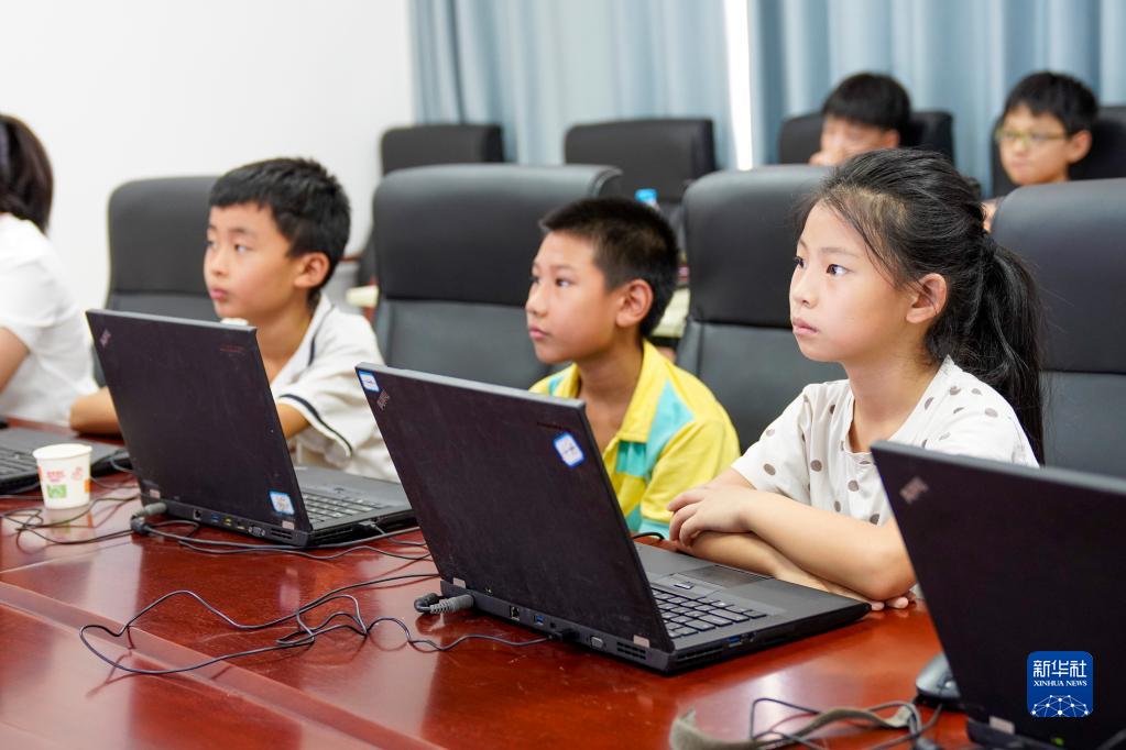 8月24日,在重慶豐都縣高家鎮汶溪社區黨群服務中心內,幾名加入家庭教育互助會的孩子在機器人編程課上學習如何為智能機器人編程。
