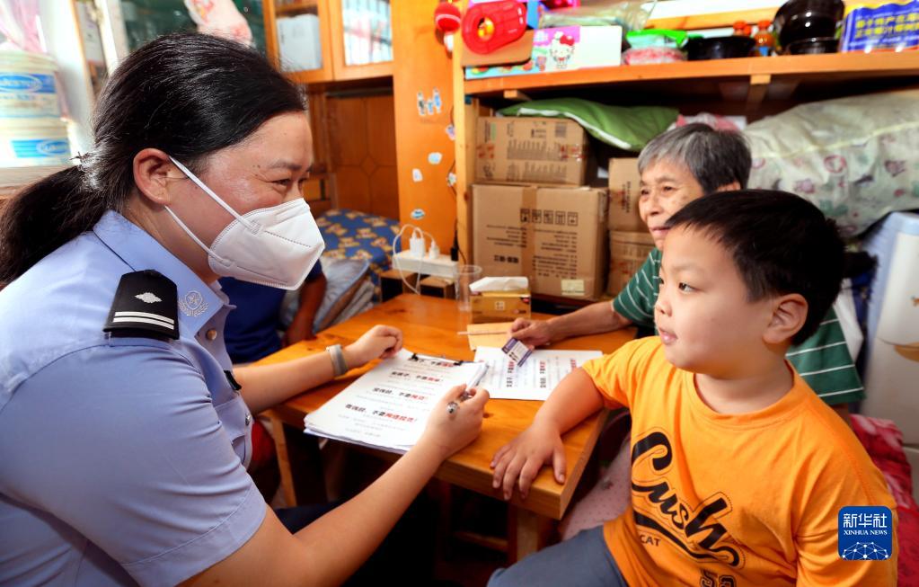 8月25日,上海市公安局浦東分局濰坊新村派出所民警黃奕奕在泉東第二居民委員會的居民家中進行反詐騙宣傳。