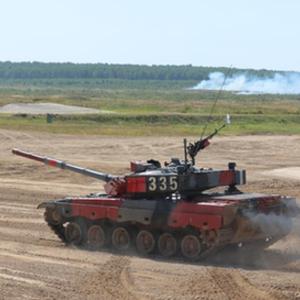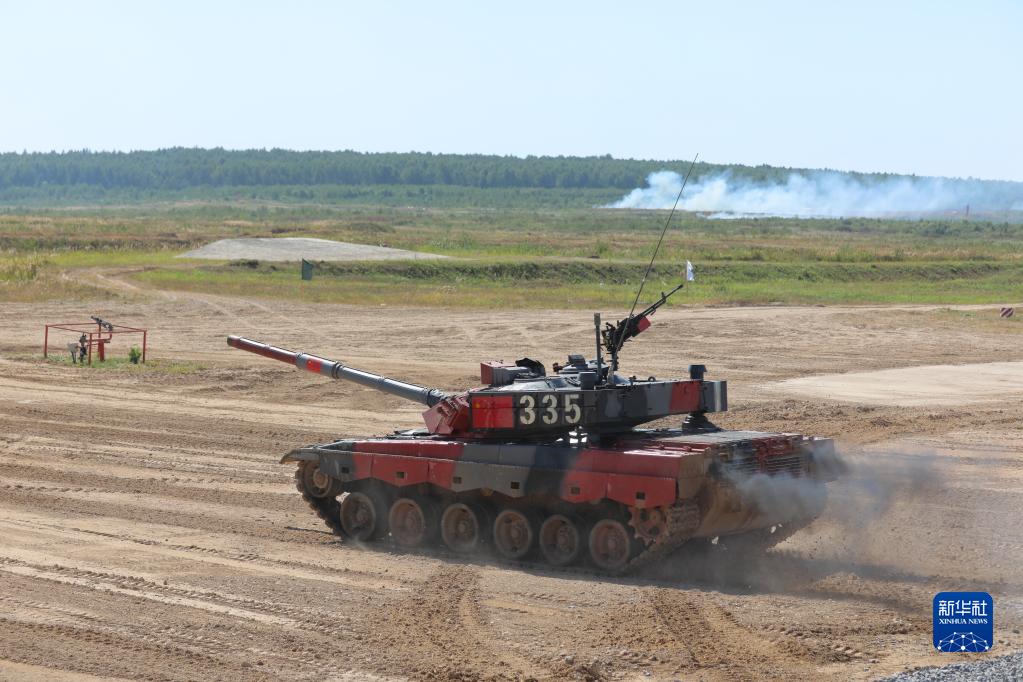 8月24日,在俄羅斯莫斯科州阿拉比諾靶場,中國參賽隊96B坦克在比賽中。