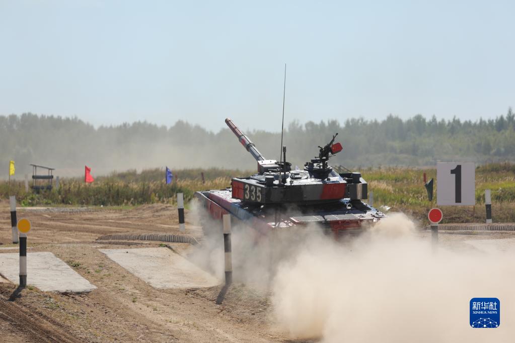 8月24日,在俄羅斯莫斯科州阿拉比諾靶場,中國參賽隊96B坦克在比賽中。 新華社發(羅坤攝)