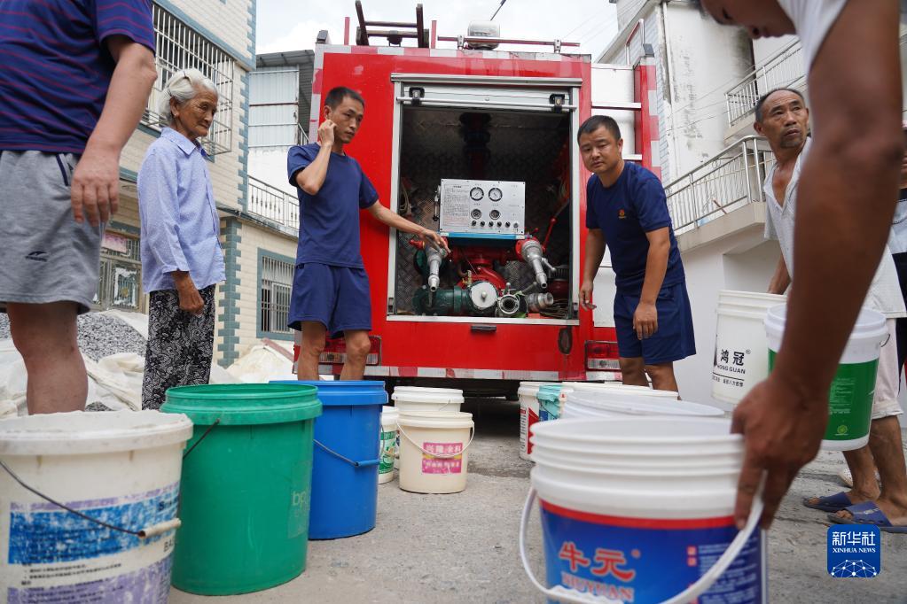7月以來,江西省瑞昌市遭遇連續高溫少雨天氣。在地處丘陵地帶的范鎮,不少村民甚至面臨生活用水短缺的局面。在政府部門的協調下,當地消防站的消防員和一輛消防車臨時轉為送水小隊,擔負起向周邊村莊送水保民生的任務。