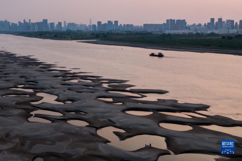 近日,長江武漢段水位持續降低,武漢市天興洲露出大片灘涂。