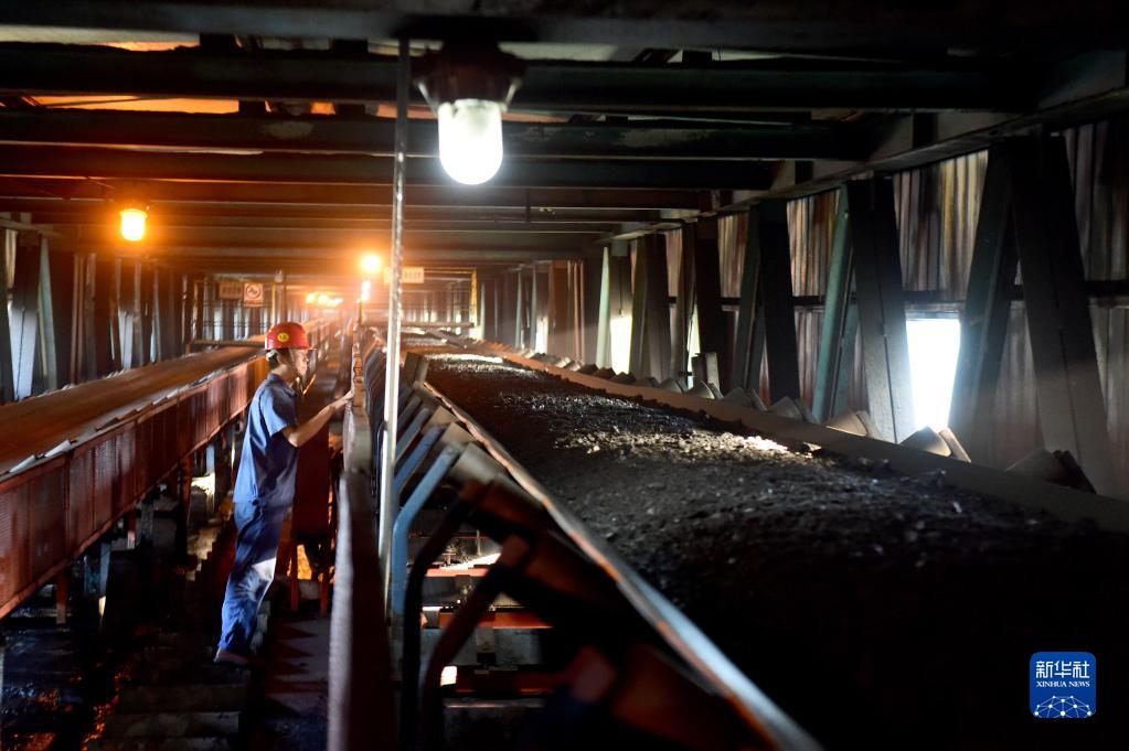 近來,全國多地遭遇高溫天氣,用電負荷增加,電煤需求攀升。在位于安徽省潁上縣的中煤新集能源股份有限公司劉莊煤礦,企業進行科學調度,充分發揮采掘能力,在確保安全的情況下,采取24小時不間斷輪班作業的方式,保持高負荷生產,保障電煤安全穩定供應。新華社記者 黃博涵 攝