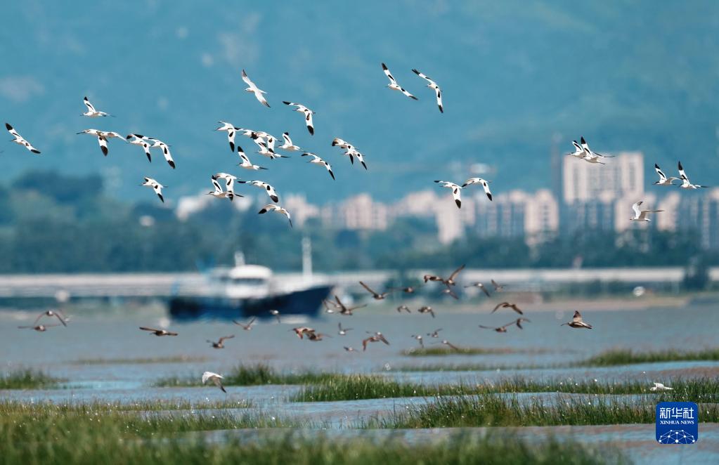 近日,位于福建福州的閩江河口濕地,迎來成群結隊南飛遷徙的候鳥“先頭部隊”。