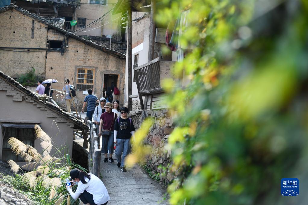 游客在浙江省松陽縣四都鄉陳家鋪村游覽(2020年7月17日攝)。新華社記者 黃宗治 攝