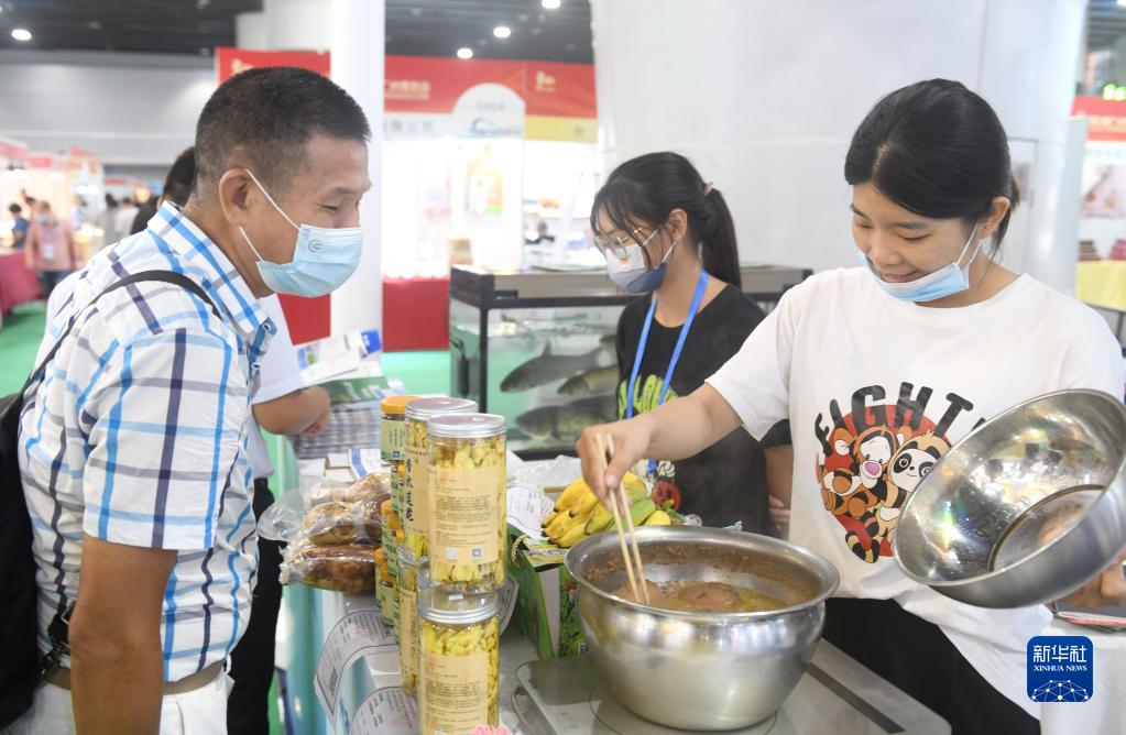 8月26日,參展商在廣州博覽會鄉村振興展上烹飪、展示自家農產品。