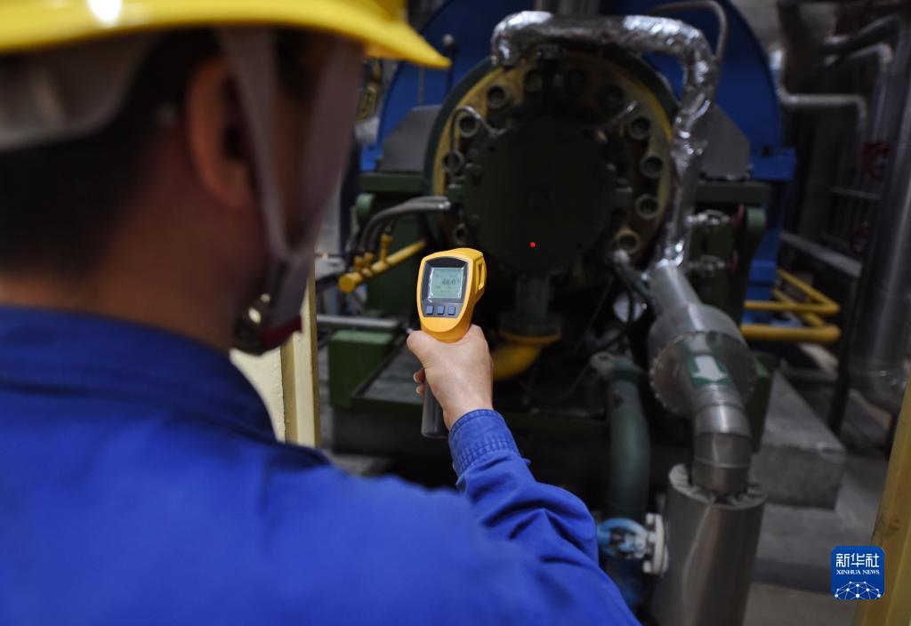 8月25日,國能成都金堂發電有限公司職工在生產廠區檢測設備運轉溫度。