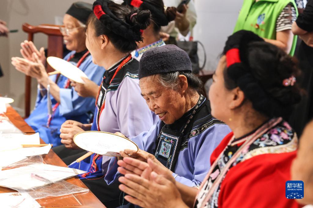 8月26日,貴陽市花溪區青巖鎮山王廟村婦女在刺繡扇面。
