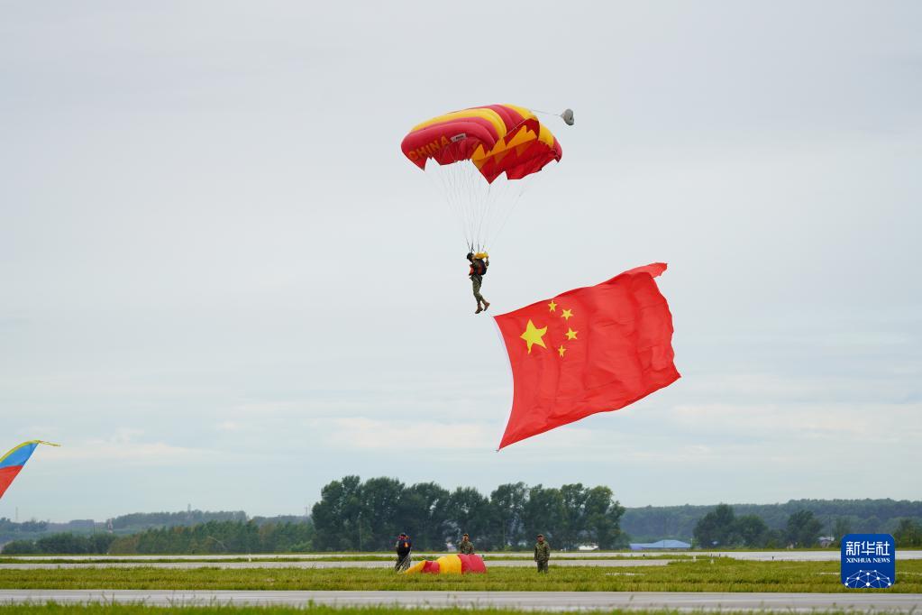 8月26日,在空軍航空開放活動暨長春航空展上,八一跳傘隊進行跳傘表演。