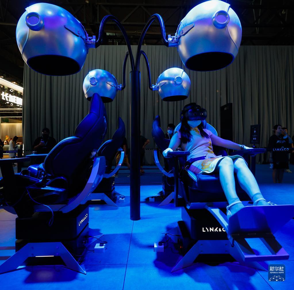 8月26日,在第二十五屆成都國際汽車展覽會上,參觀者體驗VR虛擬“駕駛”汽車。