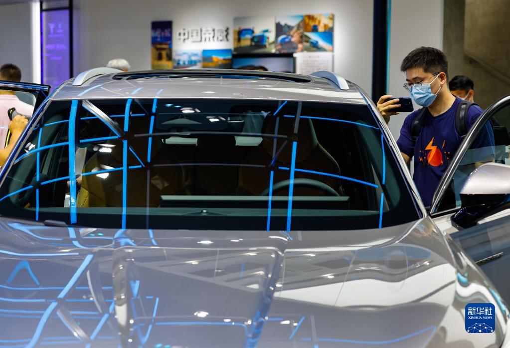 8月26日,參觀者在第二十五屆成都國際汽車展覽會的上汽榮威展臺拍攝。