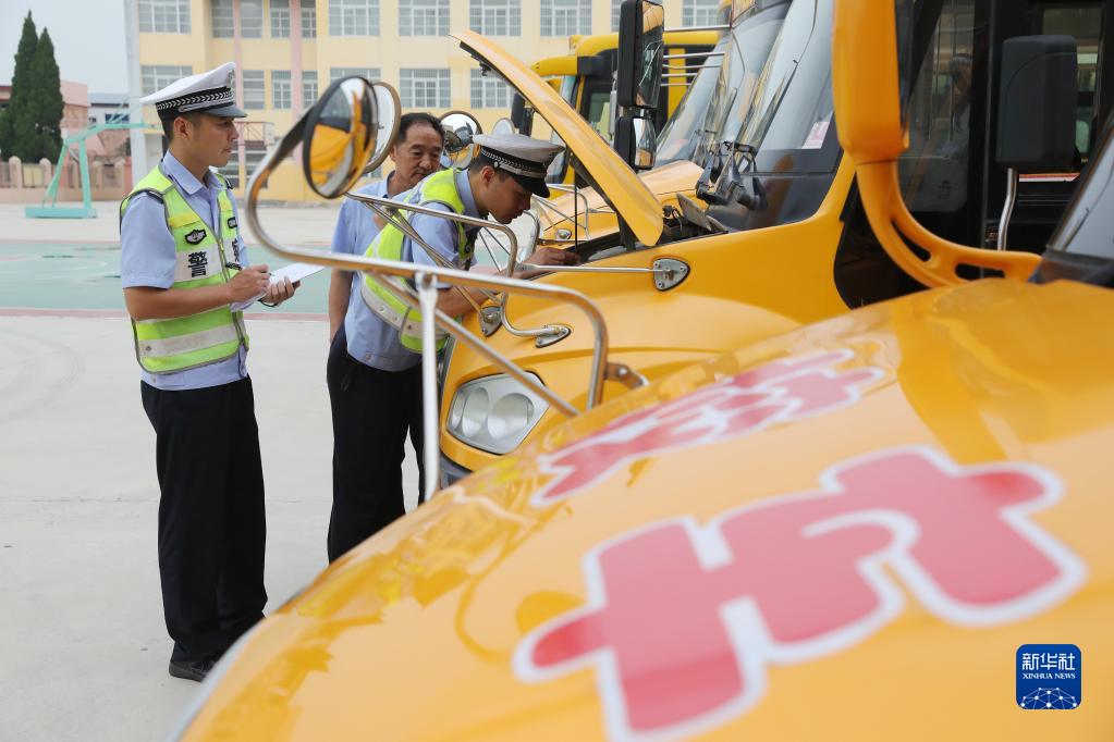 新學期開學在即,安徽省淮北市開展校車安全專項大檢查,組織交警和相關技術人員對轄區校車信息資料、校車司機駕駛資格、校車安全性能、防疫措施和隨車配備的安全應急器材設備等逐一檢查,消除校車安全隱患,確保學生乘車安全。